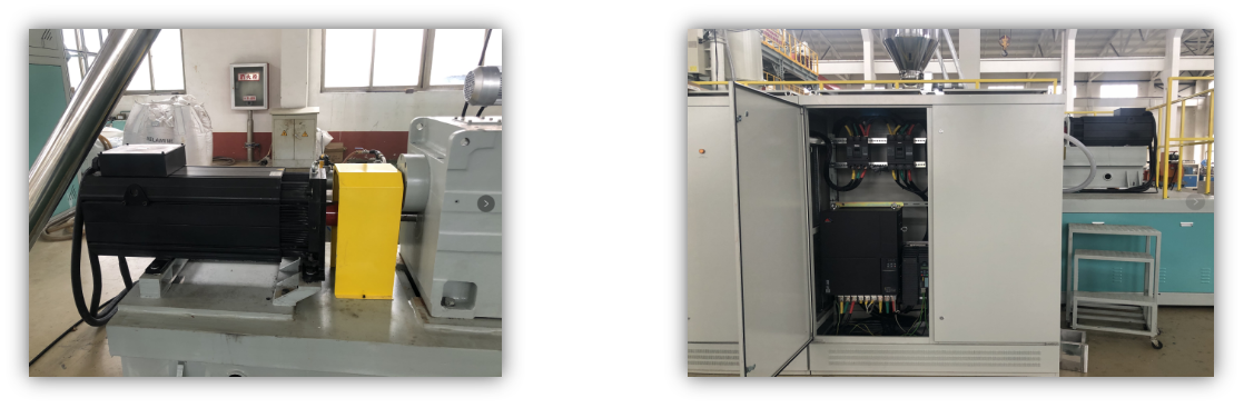 傳統(tǒng)的擠出機(jī):使用變頻電機(jī)驅(qū)動(dòng),只能做開環(huán)控制和速度的調(diào)控,而且實(shí)際轉(zhuǎn)速跟轉(zhuǎn)子轉(zhuǎn)速存在著轉(zhuǎn)差,速度就很不穩(wěn)定了;同時(shí)過載能力也不強(qiáng),當(dāng)電機(jī)到達(dá)額定轉(zhuǎn)速時(shí),輸出的力矩對(duì)比實(shí)際擠出要求的小,就會(huì)出現(xiàn)報(bào)警和停機(jī),降低工作效率,并且擠出的產(chǎn)品質(zhì)量不好;另外還有精度不高,安裝空間大的不便之處。